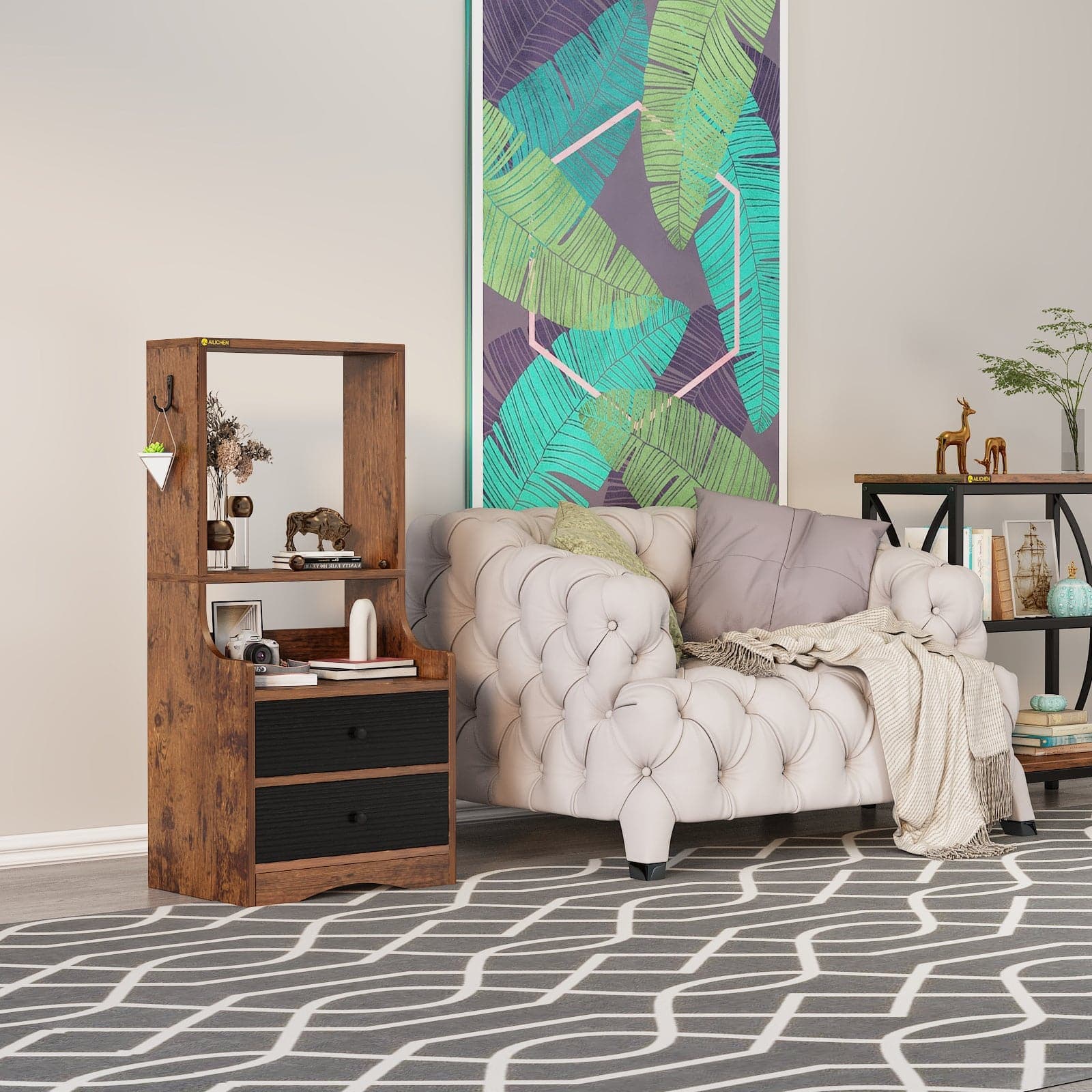 3-Tier Open Wood Shelving Unit, Mobile Small Side Tables, Space Saving