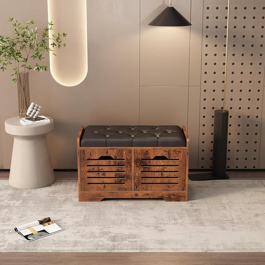 Floor Cabinet with 3 Open Shelves and Door Retro Storage Cabinet
