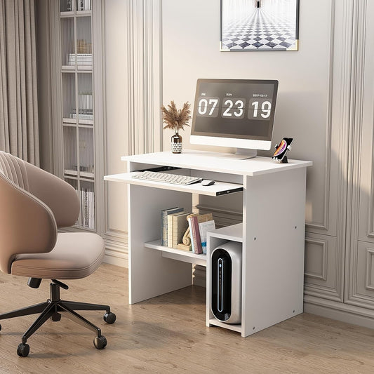 Computer Desk with Keyboard Tray and Storage Shelf Small Modern Working Table