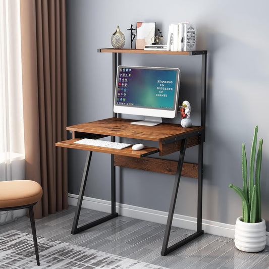 Computer Desk with Keyboard Tray and Storage Shelf Small Modern Working Table